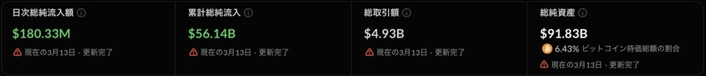 これにより、累計純流入額は561億ドルに達しています。