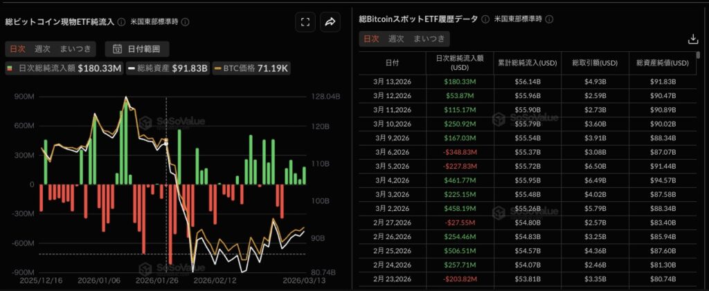 ビットコイン市場にETFから資金流入が続く様子