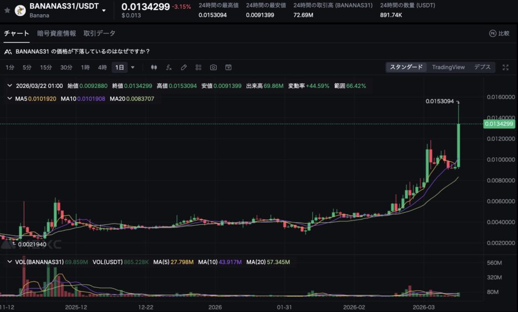 » バナナコイン『BANANAS31』、海外ミームコインブーム加速で急騰