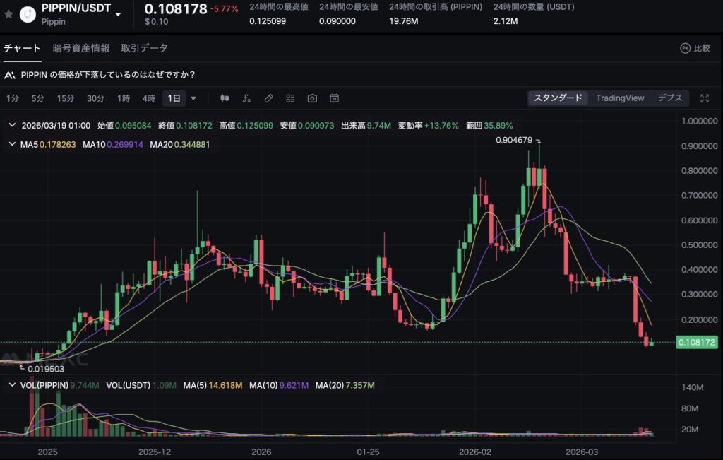 そこで今回は、PIPPINの急落を事実ベースで整理しつつ、現在の市場構造を踏まえてミームコイン全体の動きを読み解いみたいと思います。